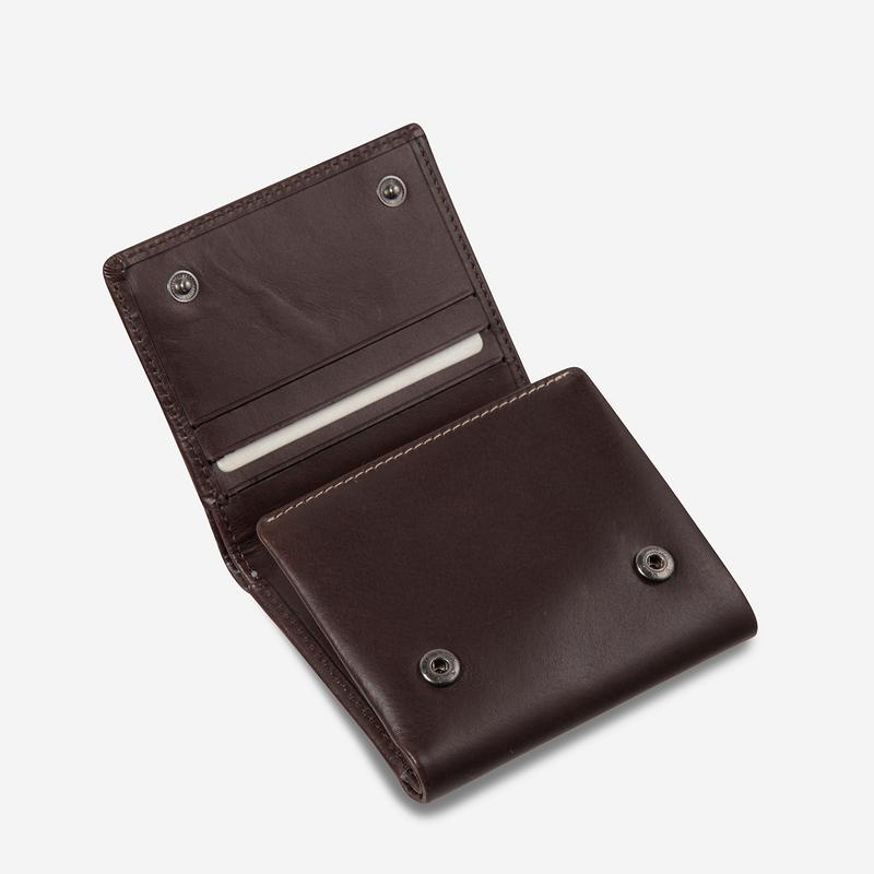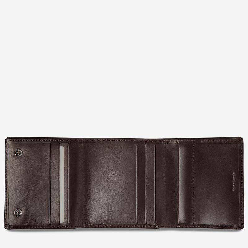 A wallet with multiple personalities, Vincent is about room and functionality without the unnecessary bulk.? Unlike most trifold wallets, Vincent’s press studs keep it slim even fully loaded.